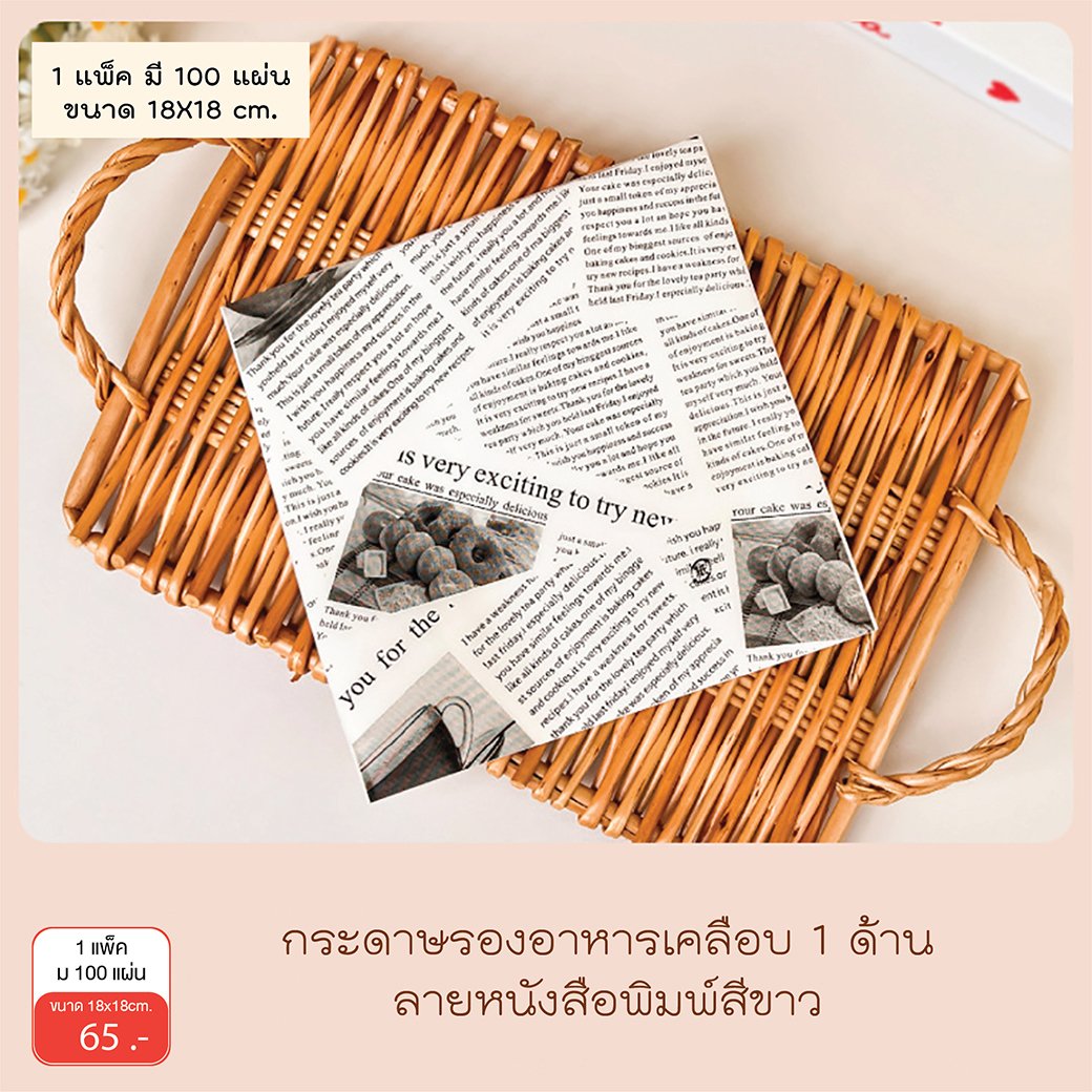 กระดาษไข กระดาษห่ออาหาร รองอาหาร ขนาด 18x18 cm. 100 แผ่น / แพ็ค