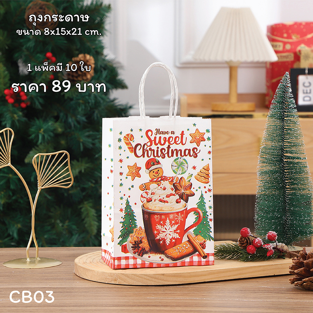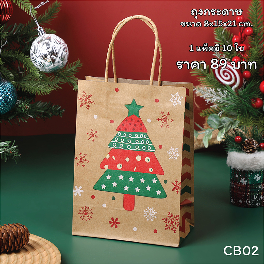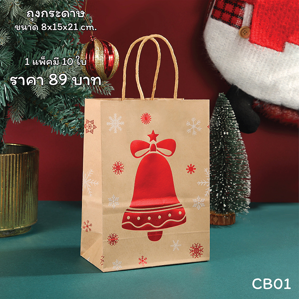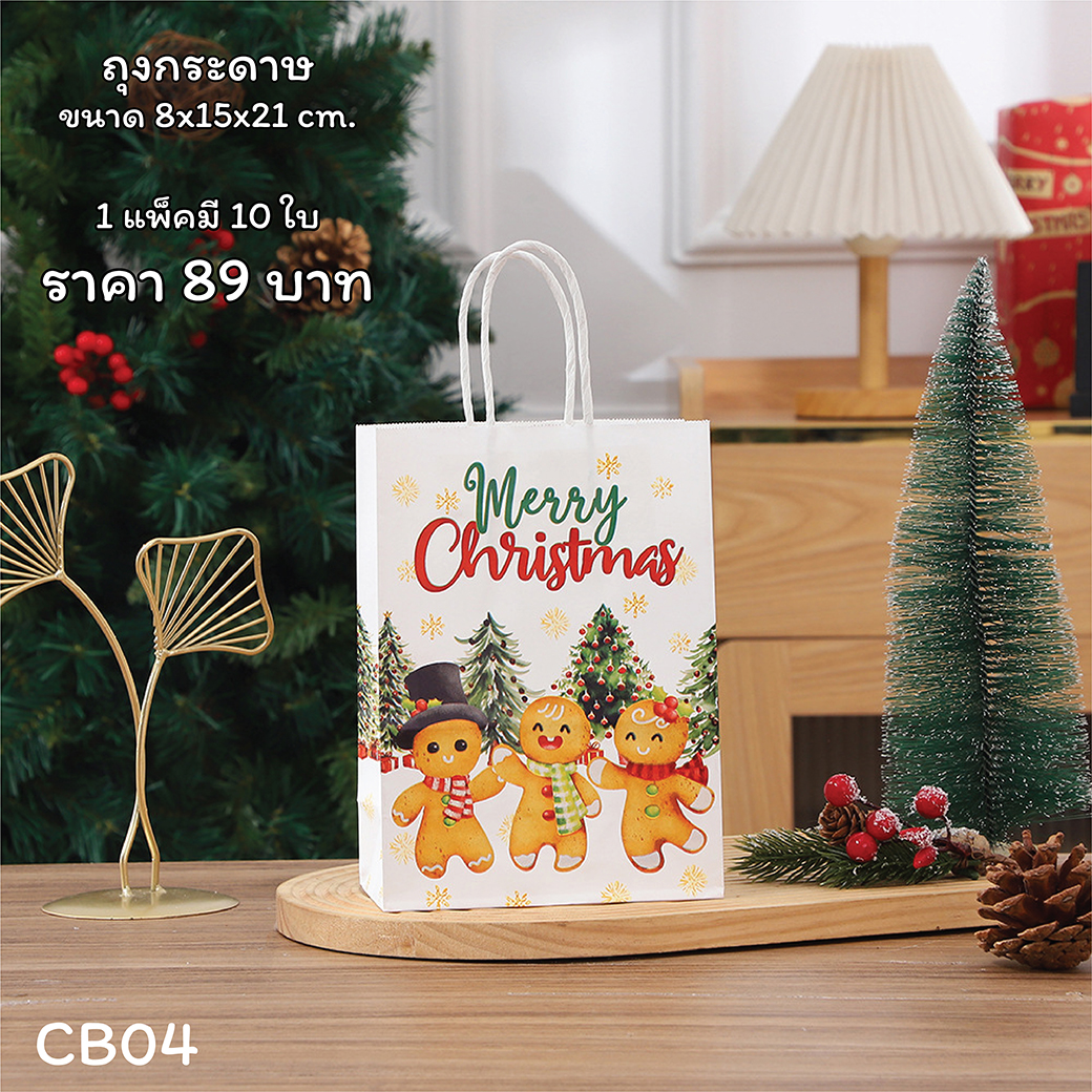 ถุงกระดาษลายคริสต์มาส ใช้ใส่ของขวัญ ของชำร่วย ขนม ของฝาก (10ใบ/แพ็ค)