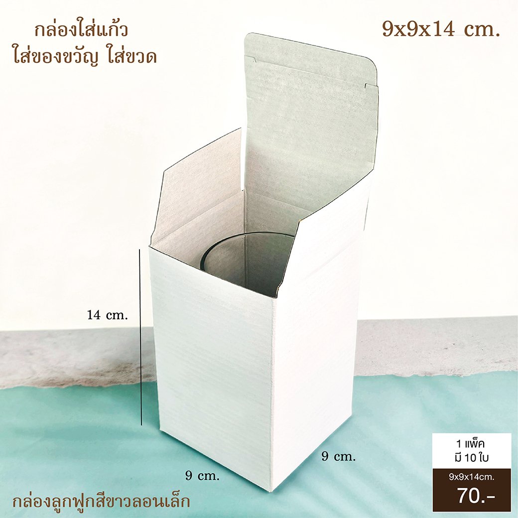 กล่องลูกฟูกลอนเล็ก สีขาว ทรงกระบอกขนาด กว้างxยาวxสูง : 9x9x14 cm.กล่องดาษหนา แข็งแรงมากใส่แก้วน้ำ กระบอกน้ำ และของอื่นๆ