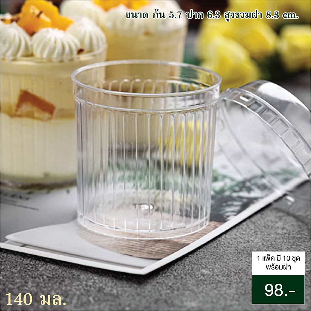 ถ้วยใส พลาสติกแข็ง พร้อมฝา (10 ชุด /แพ็ค) ขนาด 140 มล. ใส่โยเกิร์ต เจลลี่ มินิเค้ก เบเกอรี่ทั่วไป