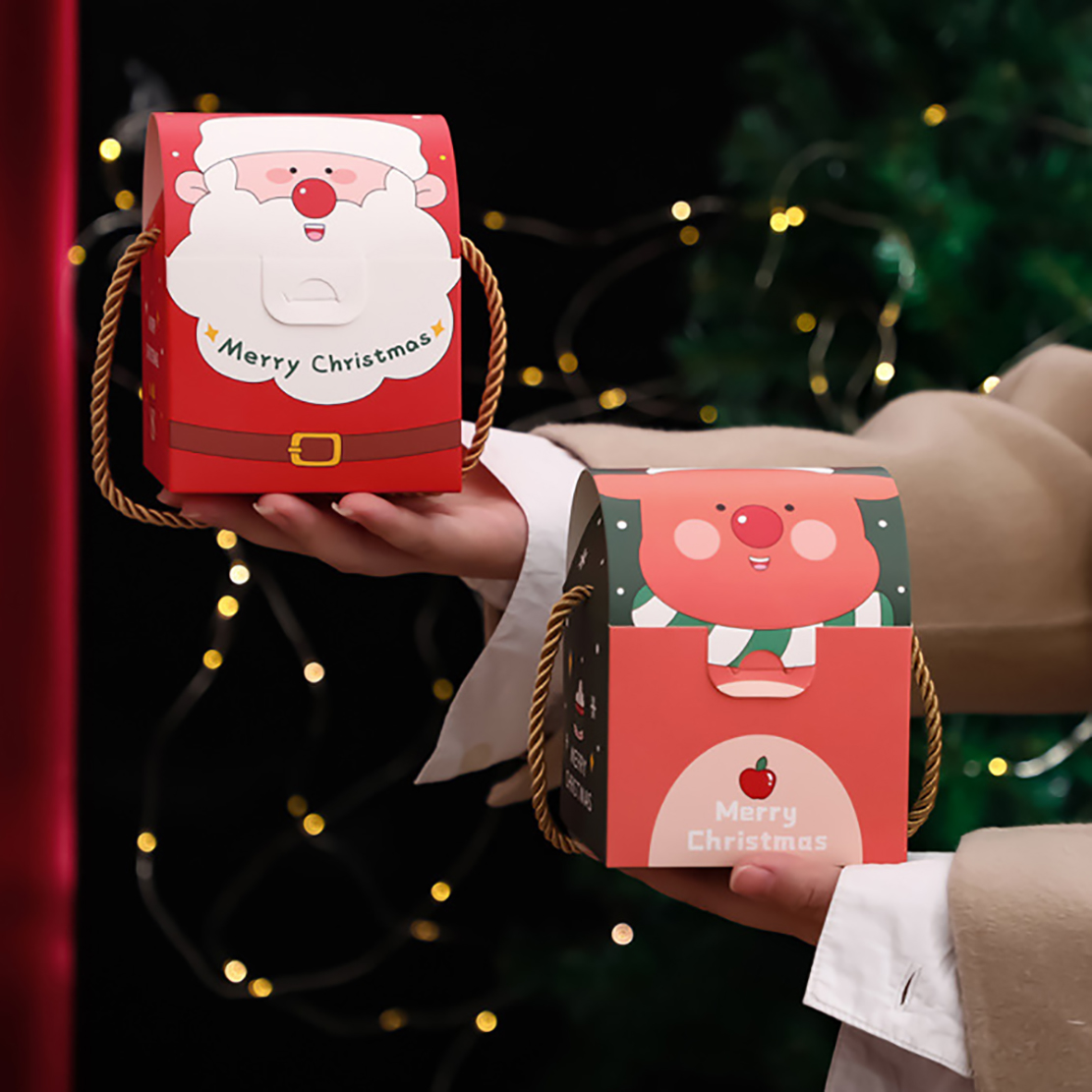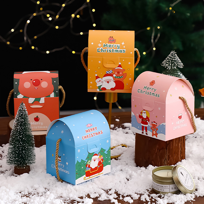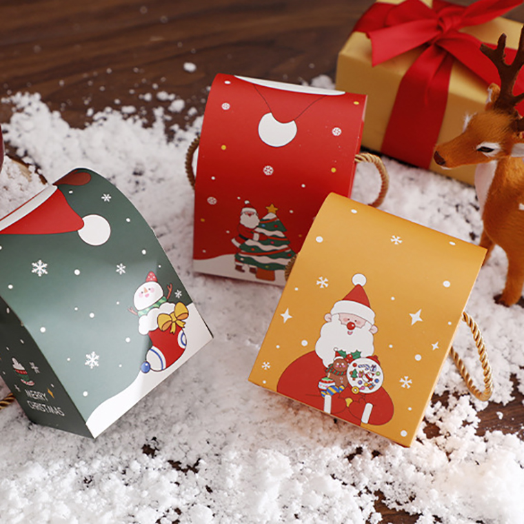กล่องคุกกี้ กล่องเบเกอรี่ กล่องของขวัญ กล่องลายคริสมาสต์ ขนาด 9 x10x12.5 cm. แพ็คละ 5 ใบ